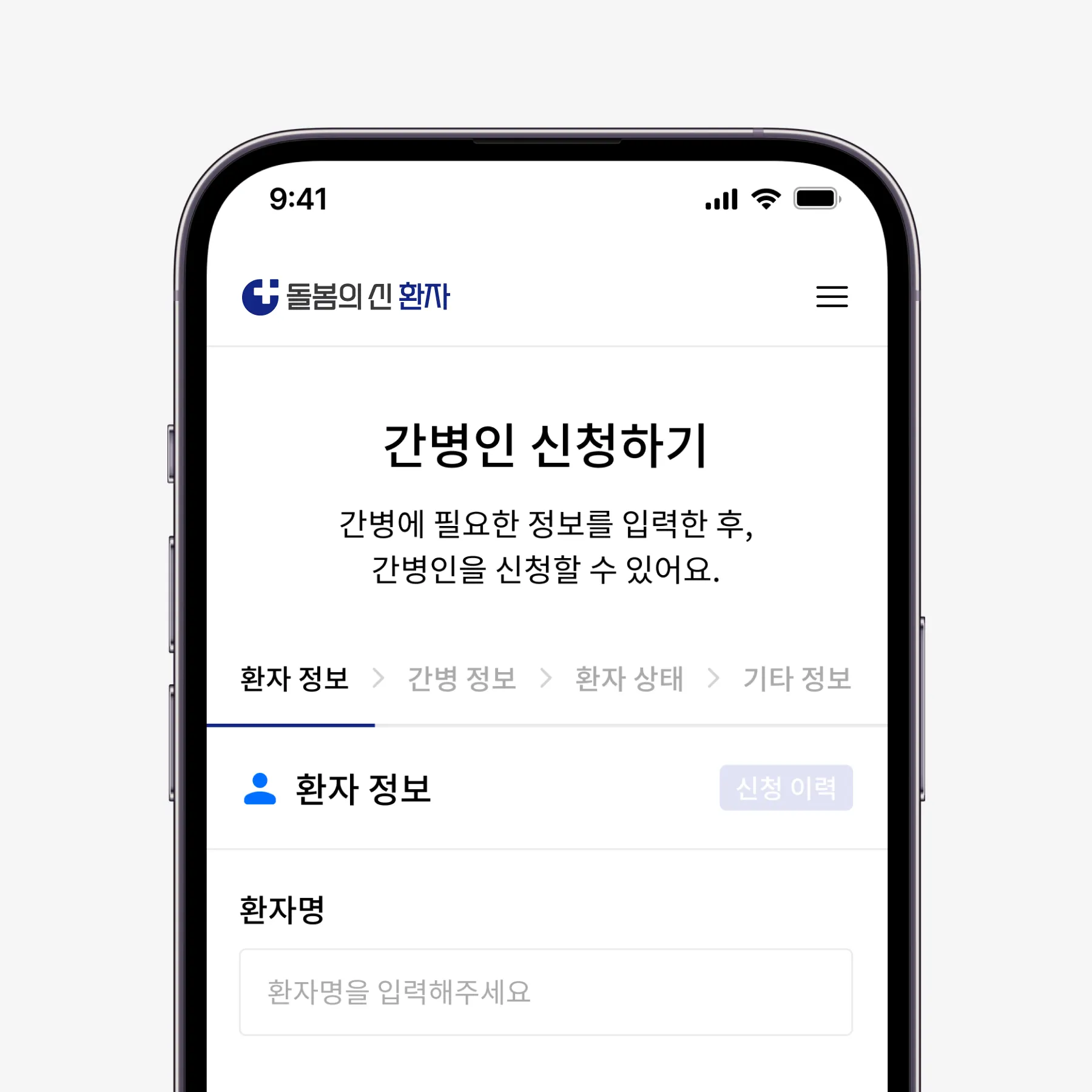 회원 가입 및 이용 지원 (환자와 간병인 모두)
