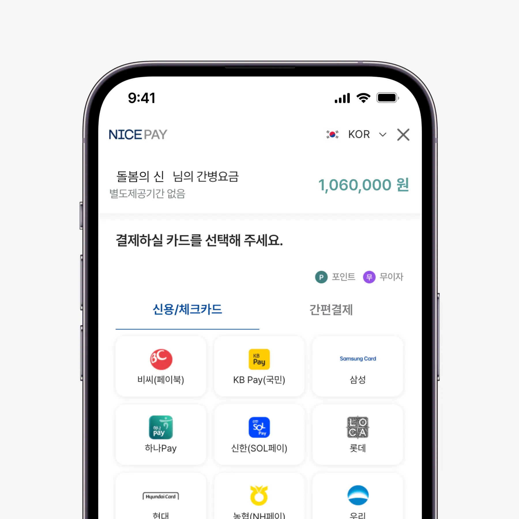 카드 결제(할부 가능), 가상 계좌 등 고객 맞춤형 결제 수단 제공
